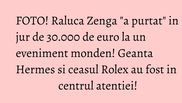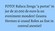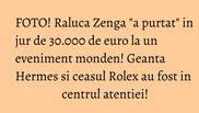 Doamna Zenga a ales pentru aceasta sindrofie, din caseta de bijuterii, un ceas Rolex care costa peste 15.000 de euro. Si nu doar tinuta si accesoriile vedetei au generat numeroase complimente, ci si culoarea parului...blond cu varfurile albastre.