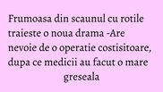 "M-am dus la camera de garda si medicii mi-au spus ca am o fractura de tibie care nu este foarte grava si trebuie sa ma operez de urgenta. In momentul in care ei au batut tija, mi-au distrus rotula la genunchi. O operatie care parea banala s-a transformat intr-un cosmar. Am trecut prin momente cat altii in 10 vieti. Fiica mea este cel mai mare ajutor al meu si cel mai bun sprijin. Datorita ei sunt bine psihic, nu am clacat.