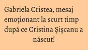La scurt timp după ce Cristina Şişcanu a făcut publică prima imagine cu fetiţa ei, Gabriela Cristea a ţinut să le transmită părinţilor un mesaj şi să le facă urări pentru micuţa lor, scrie WOWbiz.ro.