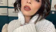 În acest caz, smokey eyes este o opțiune foarte bună pentru machiajul ochilor, dar și clasica linie de tuș armonizată perfect cu buzele roșii.