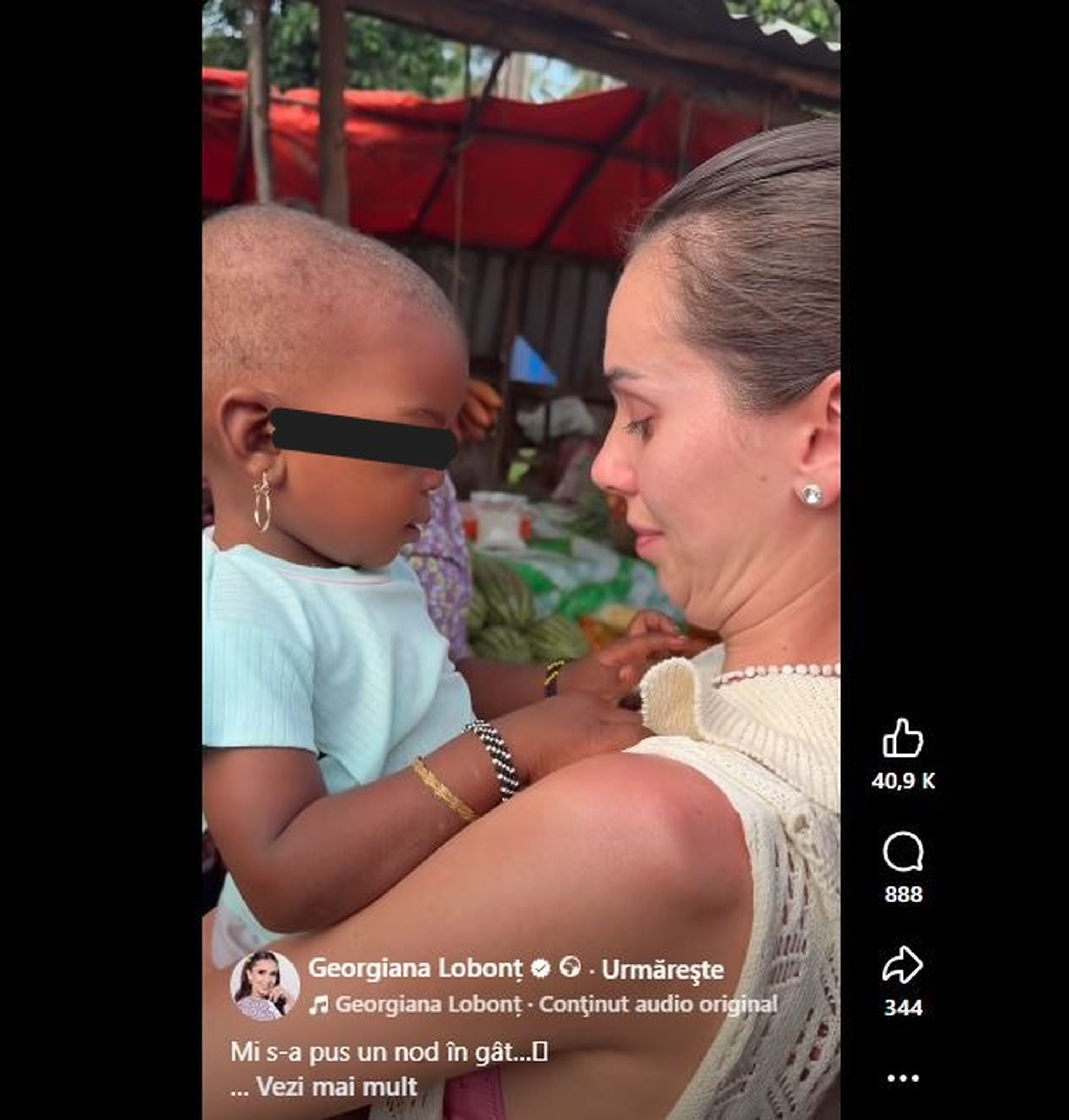 Poți să ai de toate... când ajungi aici îți vine să dai tot pentru că te încarci cu bucuria lor...", a fost descrierea lăsată de aceasta, la filmuletul postat pe contul său de Facebook, acolo unde a mai postat și un alt filmulet în care a surprins cum împărțea câteva bancnote la cei mici, fiind o familie cu mai mulți copilași, pe lângă cea mică: "Azi am simțit niște fiori prin tot corpul și vă zic sincer că mi-a rămas gândul la