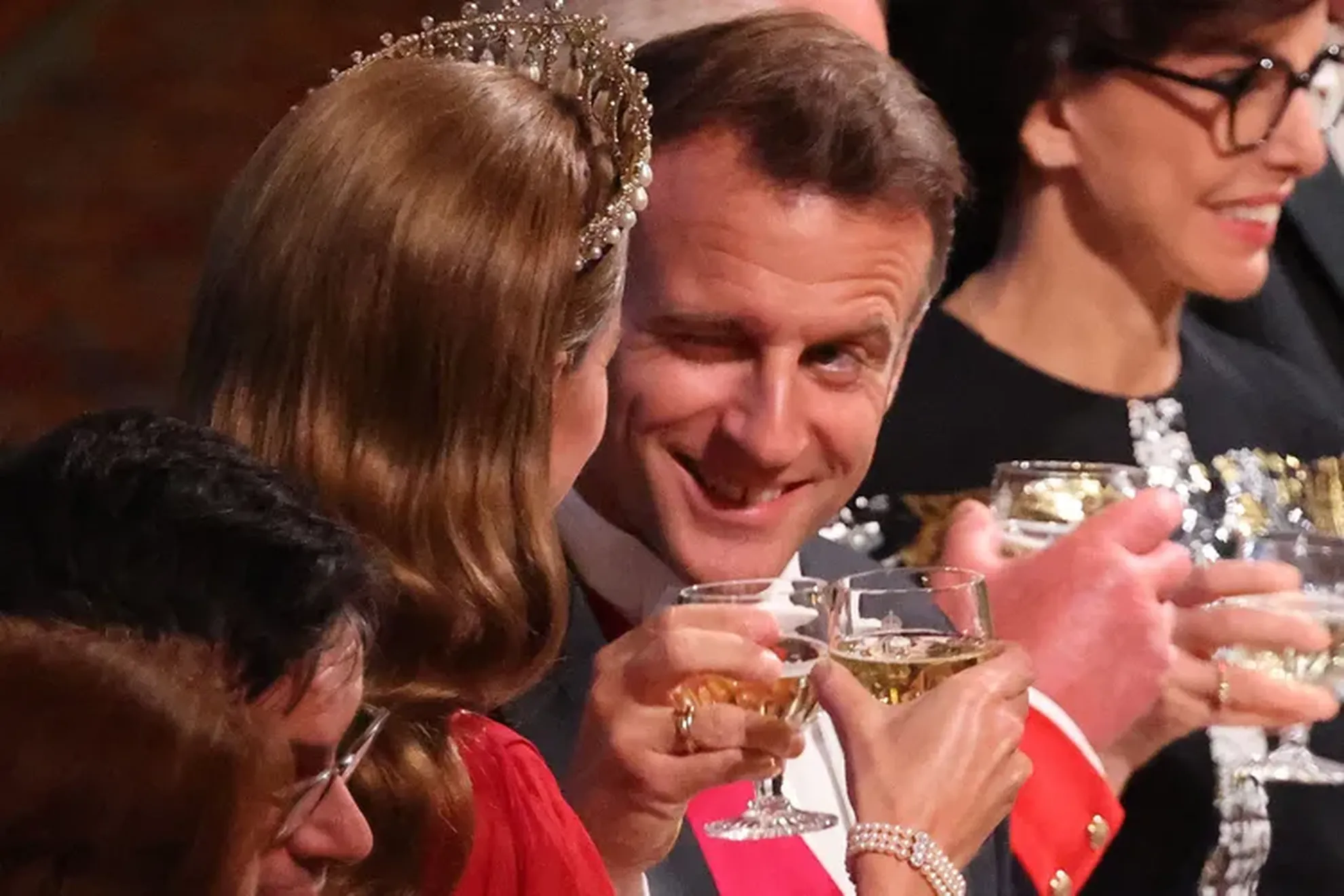 Cu toate acestea, se pare că a existat și un gest pur prietenesc între președintele Macron și prințesa de Wales, dar care poate să fie interpretat. Interacțiunea dintre cei doi a fost una plină de respect, presărată cu câteva zâmbete din când în când, iar atunci când au ciocnit paharele, Emmanuel Macron a fost surprins făcându-i cu ochiul prințesei Kate Middleton. Aceasta de altfel, a atras toate privirile într-o rochie de seară într-o nuanță de roșu închis, purtând pentru prima dată Ordinul Regal al Familiei Regelui Charles III.