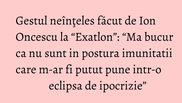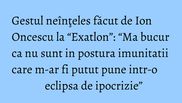 Ramasese ca il vor alege pe Florin. Si asa, de pe drum, se intorceau spre cotet si mi-au zis: <Am schimbat! Te-am ales pe tine!>. Ma bucur ca nu sunt in postura imunitatii care m-ar fi putut pune intr-o eclipsa de ipocrizie ”, a adaugat Ion Oncescu.
