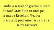 Giulia este deja in al doilea trimestru de sarcina si, in sfarsit, poate iesi din casa. Cantareata statea mai mult in pat din cauza ca avea stari de greata si rau si aproape ca nu putea manca mai nimic.