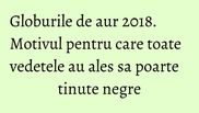 Premergator al premiilor Oscar, dar si un eveniment care atrage prin rochiile sofisticate alese de frumoasele actrite, anul acesta Globurile de Aur a strans la  un loc actori, actrite, oameni de televiziune si cantareti in acelasi "ambalaj". Mai exact, vedetele prezente pe covorul rosu au purtat tinute negre, in semn de solidaritate cu miscarea #metoo.