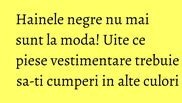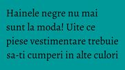 Pentru inceput, incearca-le in culori neutre, apoi indrazneste din ce in ce mai mult. Negrul este minunat, insa nu este asa amuzant. Iata ce haine negre din garderoba ar trebui inlocuite cu unele mai colorate. Toate arata mult mai bine in variantele lor mai vesele si le poti potrivi cu orice.