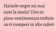 Ce-ai zice sa renunti la piesele vestimentare negre si sa incervi unele roz, albe sau albastre? Negrul este perfect atunci cand incerci un outfit nou, insa sunt unele haine pot fi purtate intr-o multime de alte culori.