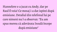 Hannelore s-a jucat cu Andy, dar pe Raul îl voia! Ce mesaj i-a dat ispitei după emisiune. Detaliul din telefonul lui pe care nimeni nu l-a observat: "Eu am spus mereu că adevărata Insulă începe după emisiune"