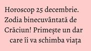 Horoscopul din 25 decembrie vă recomandă să petreceți clipe fericite alături de cei dragi. Spiritul Crăciunului va învălui toate zodiile într-o mantie de fericire. O zodie este binecuvântată în Sfânta Zi de Crăciun. Ce mare dar îi va schimba viața!