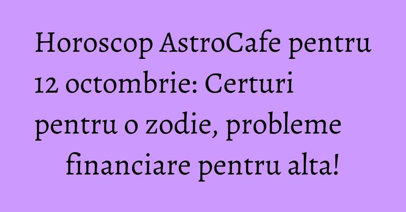 Citeste previziunile astrologice complete pentru ziua de 12 octombrie 2017.
