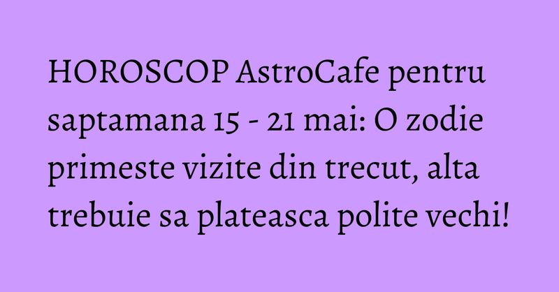 Citeste previziunile tale astrologice pentru saptamana 15 - 21 mai 2017.