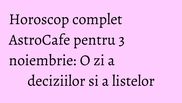 Citeste previziunile tale astrologice complete pentru ziua de 3 noiembrie 2017.