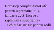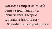 AstroCafe iti prezinta previziunile astrologice pentru saptamana 15 - 21 ianuarie 2018. Afla ce ti-au pregatit astrele.