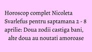 Horoscop complet Nicoleta Svarlefus pentru saptamana 2 - 8 aprilie: Doua zodii castiga bani, alte doua au noutati amoroase