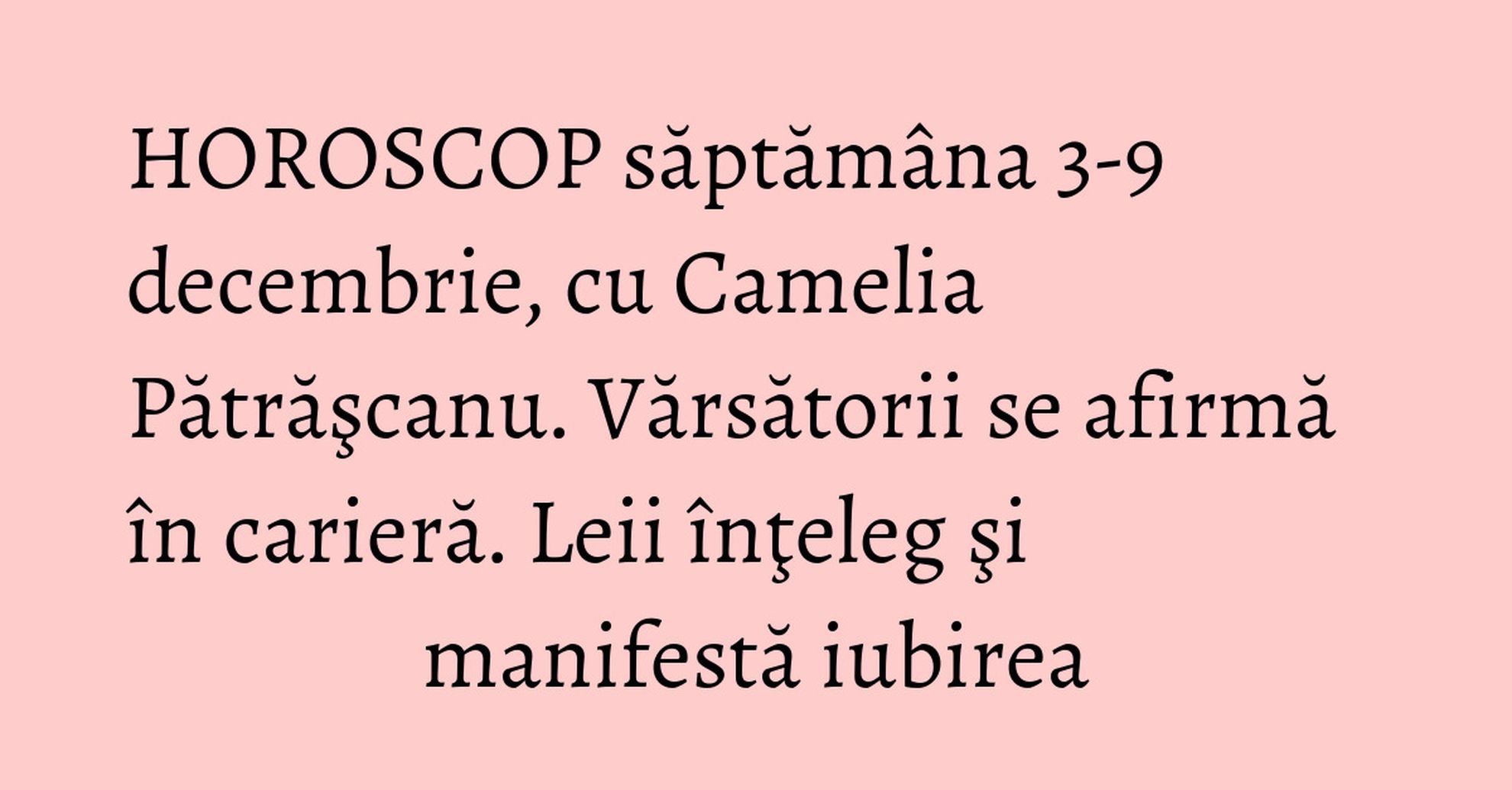 Camelia Pătrăşcanu a prezentat, la Antena 3, horoscopul pentru săptămâna 3-9 decembrie.