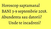 Horoscop saptamanal BANI. Saptamana 3-9 septembrie nu este lipsita de evenimente astrale importante. Ele contribuie la restabilirea noastra dupa zbuciumul ultimelor luni dar si asezarea noastra pe alt fagas.