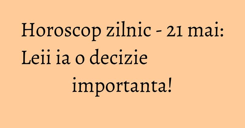 Citeste previziunile tale astrale pentru data de 21 mai 2016.