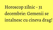 Dialogurile si intalnirile cu persoanele din anturajul apropiat sunt frecvente si importante. Poti afla informatii pretioase necesare atat in plan personal, cat si profesional. Printre treburile cotidiene, ar fi bine sa retii cele vehiculate astazi in preajma ta, deoarece iti vor aduce dividente la momentul potrivit. Calatoriile pe distante scurte sunt alte teme de luat in calcul astazi. Pregateste-te pe indelete de revelion!
