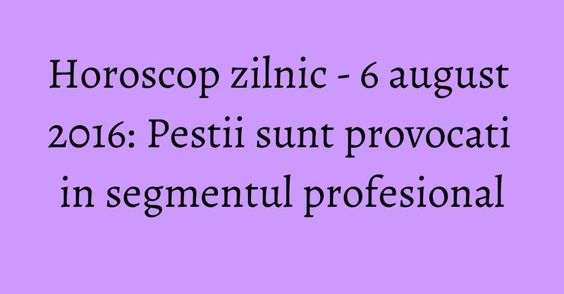 Citeste previziunile tale astrale pentru data de 6 august 2016.