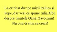 Luni seara, Oana Zavoranu a fost in platoul WOWbiz cu Iulia Albu. Oana a vorbit despre relatia ei cu fostul sot, Pepe, iar vedeta Kanal D a luat la puricat vedetele care au fost prezente la nunta lui Pepe cu Raluca. Dintre toate, cele mai mici note pentru vestimentatie au luat mireasa Raluca si nasa Andra Maruta.