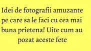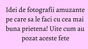 Amintirile sunt singurele cu care ramai dupa o vacanta frumoasa sau un moment placut petrecut alaturi de prieteni. De aceea este bine sa imortalizezi acele clipe, pentru ca mai apoi sa iti aduci aminte de ele cu zambetul pe buze. Uite ce idei amuzante poti sa pui in practica cu prietena sau prietenele tale!