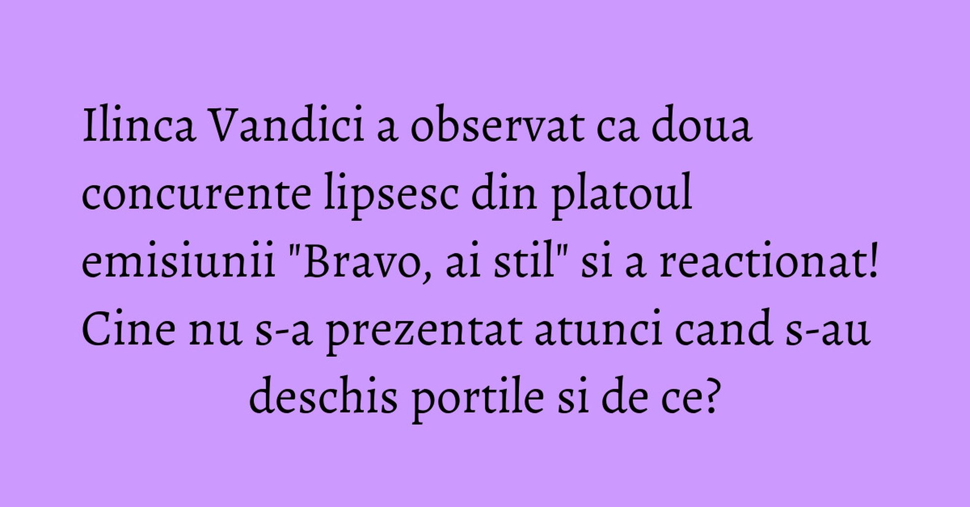 "Doua concurente lipsesc astazi! Cine?", a spus Ilinca Vandici.