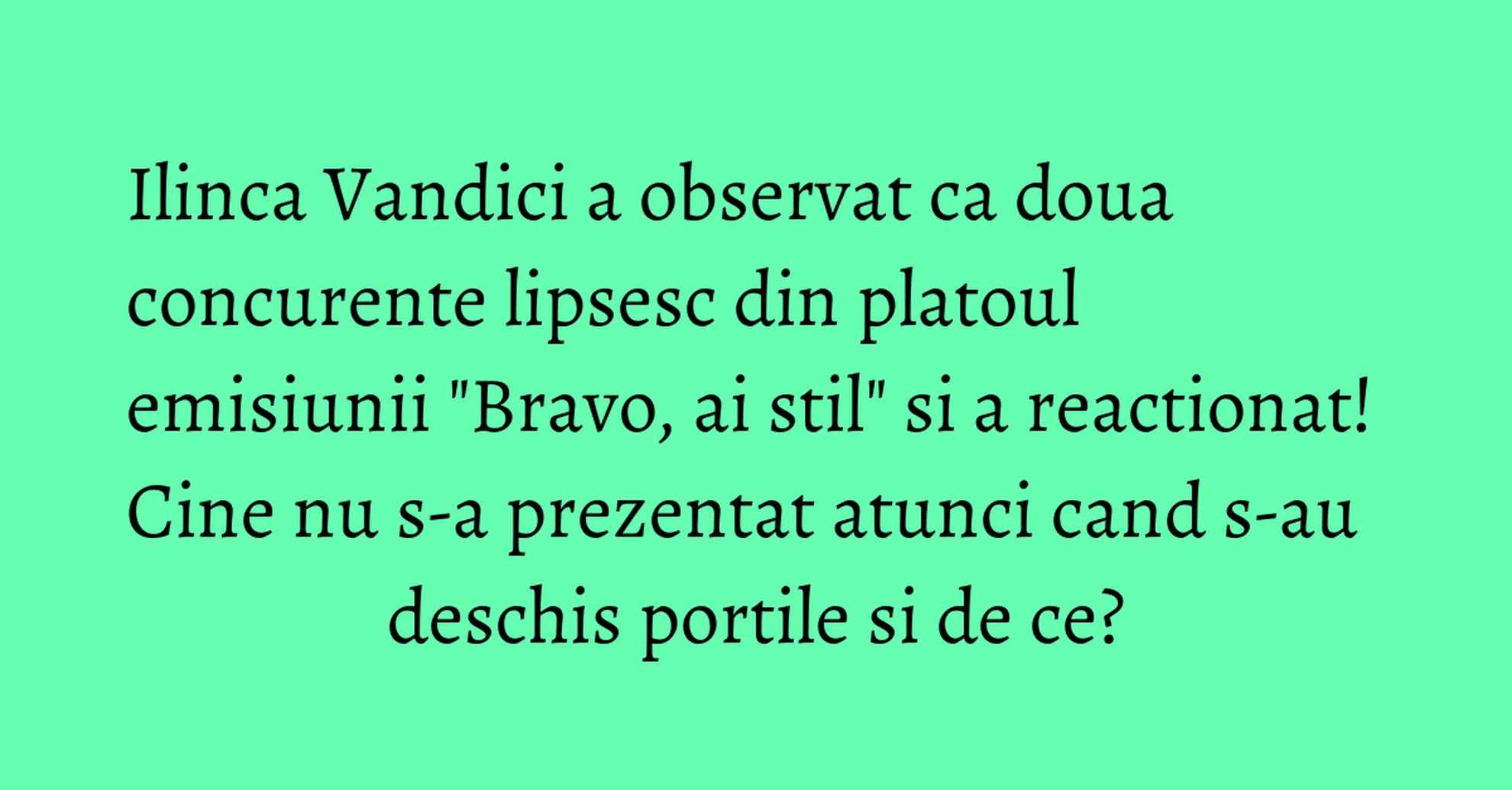 Ilinca Vandici a fost uimita atunci cand a observat ca doua concurente lipsesc din platoul emisiunii "Bravo, ai stil".