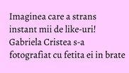 Gabriela Cristea s-a fotografiat cu fetita ei in brate, iar imaginea a strans in cateva minute mii de like-uri pe Facebook.