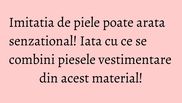 Piesele din imitatie de piele sunt mai moi si catifelate la atingere si se muleaza mai bine pe silueta. De aceea, iti recomandam cateva piese vestimentare ieftine care te vor pune cu usurinta in valoare.