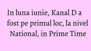 Luna iunie a adus audiente spectaculoase pentru Kanal D, in Prime Time (20:00 – 24:00), la nivelul publicului comercial.