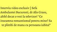 Interviu video exclusiv | Sefa Ambulantei Bucuresti, dr Alis Grasu, altfel decat o vezi la televizor! “Ce inseamna romantismul pentru mine? Sa te plimbi de mana cu persoana iubita!”