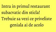 Avand tavan si pereti din sticla, restaurantul ofera o priveste geniala, cu acces direct la rechini, pisici de mare, broaste testoase si corali. Are cinci stele, este parte a resortului Condrad Maldives Hotel si a fost conceput pentru oaspetii care vor sa se bucure de frumusetile oceanului, fara insa a se uda.
