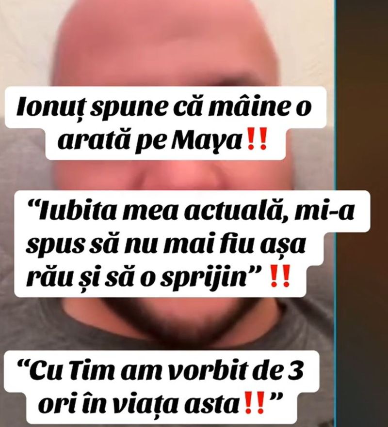 Într-un alt videoclip postat pe TikTok, Ionuț a vorbit din nou despre situația tensionată cu fetița lui, dar și despre actualul partener de viață al Alinei Mădălina, Tim.
