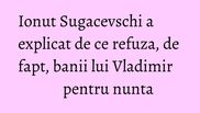 "Eram in direct (n.r. pe Facebook) si nu am vrut sa fiu prea nesimtit. Chiar nu am vrut sa fiu prea nesimtit, e un gest frumos, dar nu as accepta asa ceva. El a vrut sa para baiat bun", a spus Ionut Sugacevschi.