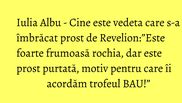 Ca-n fiecare joi, Iulia Albu a venit la WOWbiz, unde a analizat ferm ţinutele vedetelor. Care au impresionat-o şi care nu, aflaţi mai jos.