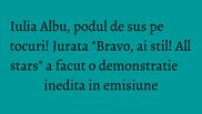 Iulia Albu a reusit sa-si impresioneze colegii dupa ce a facut o demonstratie de mobilitate, in timpul galei de sambata seara. Jurata "Bravo, ai stil! All Stars" a facut podul de sus, in timp ce in picioare purta tocuri cui.