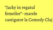 Pelicula „Jacky in regatul femeilor” semnata de regizorul si scenaristul Riad Sattouf a fost dublu premiata: Cel Mai Bun Film si Cel Mai Bun Scenariu. Juriul a decis in unamitate sa premieze „cel mai implinit film, care transmite emotii universale si utilizeaza umorul in cel mai eficient mod, ca o critica sociala”. Actrita Anamaria Vartolomei a primit cele doua trofee Comedy Cluj in numele echipei filmului. Tanara a jucat alaturi de actori celebri precum Charlotte Gainsbourg, Vincent Lacoste sau Michel Hazanavicius. Indraznet si inovator, “Jacky au royaume des filles/ Jacky in regatul femeilor” spune povestea unei unei femei autoritare din Republica Democratica Bubunne care isi condamna oponentii la spazuratoare. In aceasta tara ciudata, femeile sunt la putere, in vreme ce barbatii, imbracati in robe din cap pana in picioare, au indatoriri domestice.