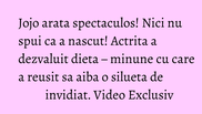 Jojo are doi copii, pe Achim, din casnicia trecuta, si pe Zora, rodul iubirii dintre ea si Paul Ipate. Actrita in varsta de 36 de ani, a reusit sa revina la greutatea initiala, cea de dinainte de a ramane insarcinata cu micuta Zora, in varsta de aproape un an, urmand o dieta.