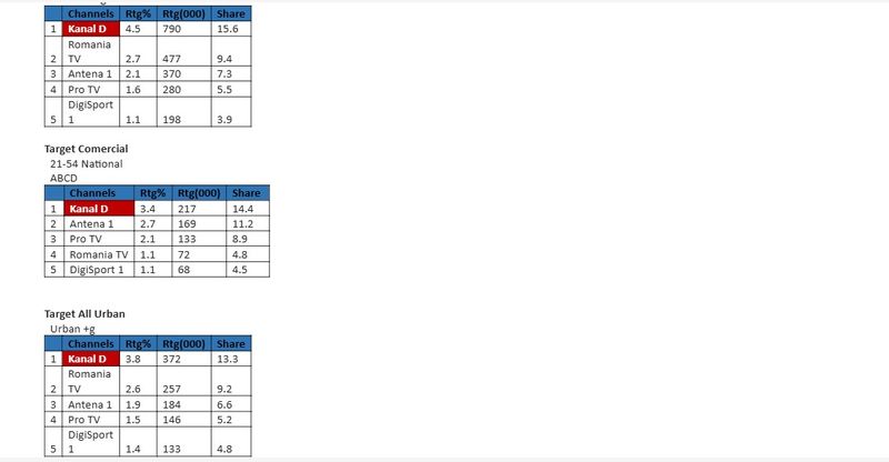 Astfel, prima parte celebrului show matrimonial ”Casa Iubirii”, difuzată în intervalul 16:00 – 18:00, a înregistrat, 4,5% puncte de rating și 15,6% cotă de piață, în rândul publicului din întreaga țară (target Național), 3,4% puncte de rating și 14,4% cotă de piață, pe targetul Comercial (21-54 Nat ABCD), și 3,8% rating și 13,3% cotă de piață, în rândul publicului de la orașe (target All Urban), Kanal D surclasând, astfel, stațiile concurente, poziționându-se pe primul loc în topul audiențelor.