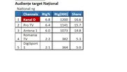 Astfel, în intervalul difuzării producției (20:00 – 23:00), stația TV a înregistrat 6.8% puncte de rating și 16.6% cotă de piață, la nivelul întregii țări.