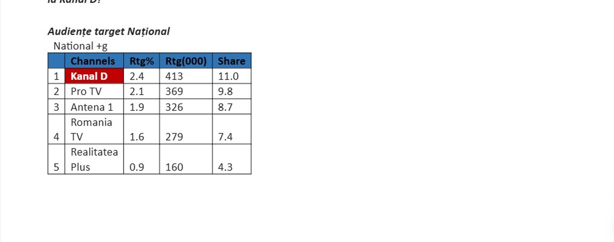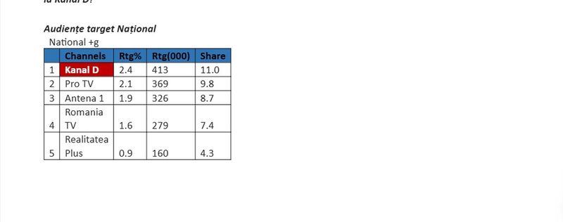 O medie de 413.000 de telespectatori au urmărit ieri Kanal D în intervalul sus menționat, minutul de aur fiind înregistrat la 14:37, când 487.000 de fani ai emisiunii urmăreau reportajele inedite marca “Asta-i România!”.