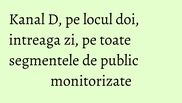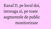 Kanal D a fost ieri pe locul doi in topul audientelor, la nivelul intregii zile, pe toate segmentele de public monitorizate.