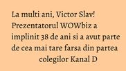 Victor Slav si-a petrecut ziua de nastere si alaturi de colegii de la Kanal D. Marti, prezentatorul WOWbiz a imlinit 38 de ani si, dupa ce le-a promis colegilor ca le face cinste, Victor s-a trezit cu o farsa de zile mari!