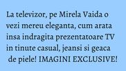 Mirela Boureanu Vaida se detaseaza intotdeauna pe micul ecran prin tinutele pe care le poarta! De fiecare data, vedeta isi face aparitia in emisiuni eleganta, stilata, coafata si machiata perfect, drept dovada ca publicul o apreciza si o considera un exemplu de urmat!