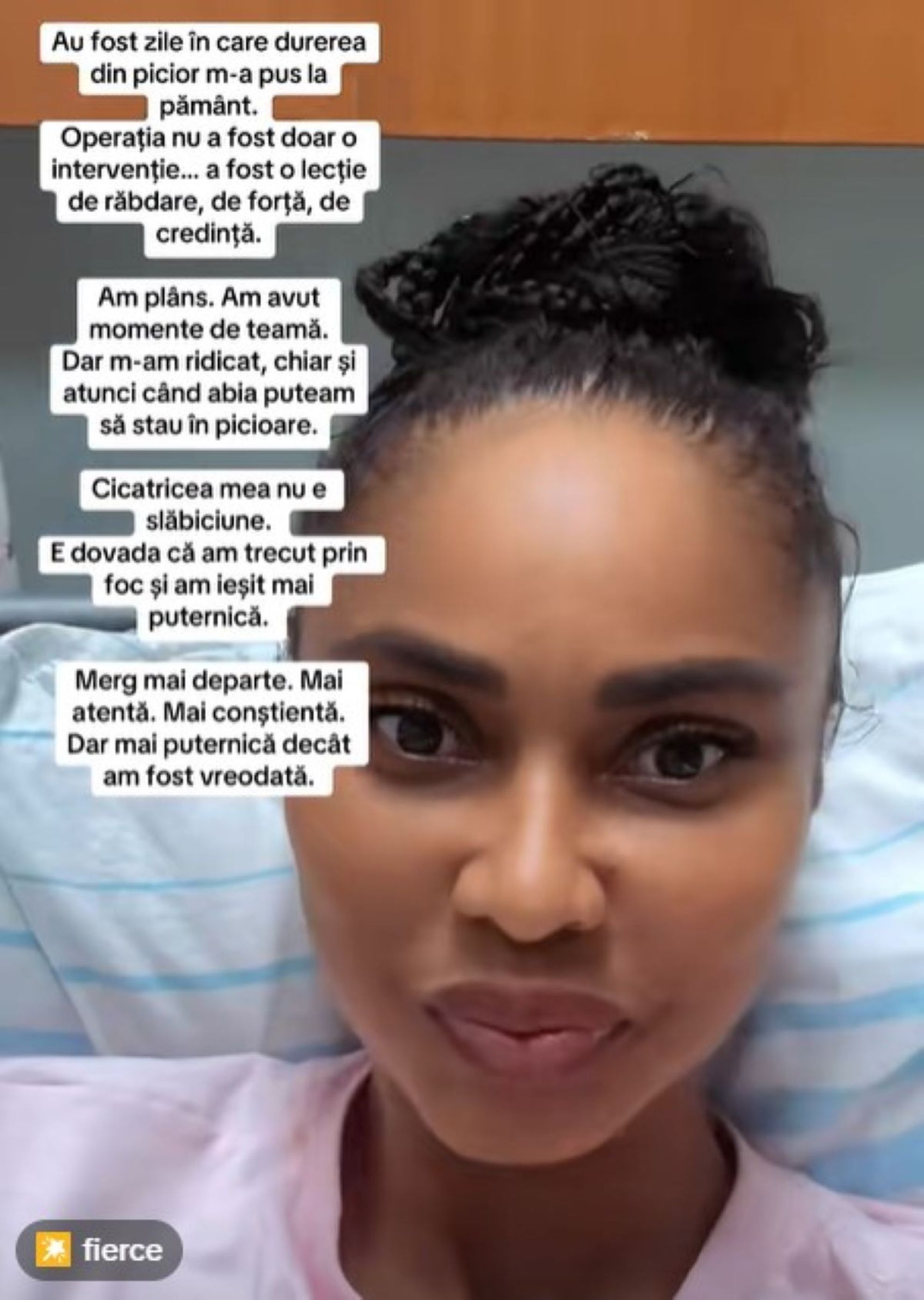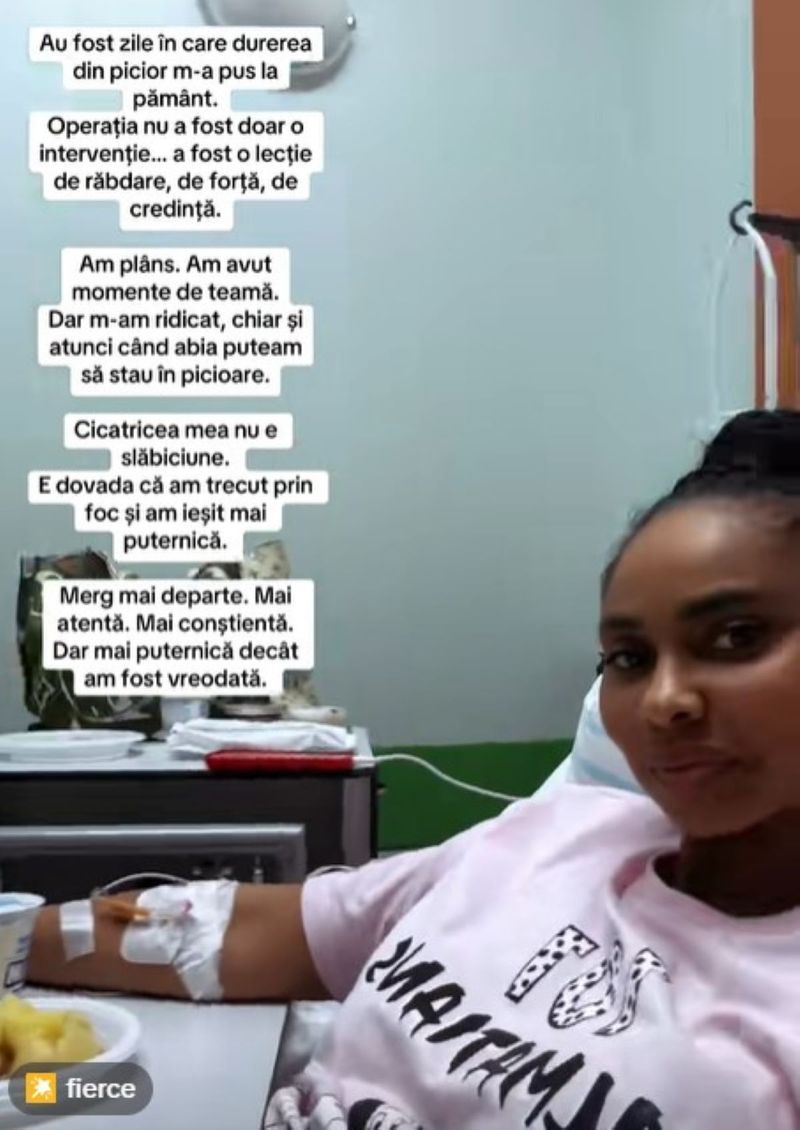 Operaţia nu a fost doar o intervenție... a fost o lecție de răbdare, de forţă, de credinţă. Am plâns. Am avut momente de teamă. Dar m-am ridicat, chiar şi atunci când abia puteam să stau în picioare. Cicatricea mea nu e slăbiciune. E dovada că am trecut prin foc şi am ieşit mai puternică. Merg mai departe. Mai atentă. Mai conştientă. Dar mai puternică decât am fost vreodată”, a fost mesajul transmis de Laurette Atindehou, pe rețelele de socializare.