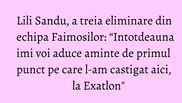 In urma duelului dintre cele doua Faimoase, Lili Sandu a pierdut batalia pentru competitia “Exatlon” si se va reintoarce acasa.