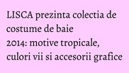 LISCA, brandul international de costume de baie si lenjerie intima, a lansat colectia Swimwear 2014. Printre tendintele must - have ale sezonului propuse de catre designerii LISCA se regasesc culorile vii si pastelate, motivele tropicale, printurile exotice, temele florale, accesoriile grafice si sofisticate, nuantele in degrade, dar si modelele cu volanase sau fundite.