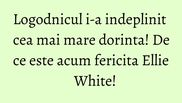 Ellie White traverseza o perioada extrem de benefica. Artista, insarcinata pentru a doua oara, este in culmea fericirii de cand logodnicul sau, Doru Tinca, care ii este si manager, i-a indeplinit una din cele mai mari dorinte ale sale.