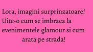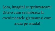 La evenimente, Lora este mereu o prezenta glamour! Rochiile ei sunt simple, elegante, sexy, pline de feminitate! In completare, coafura este una impecabila si o transforma intr-o adevarata diva de covor rosu!