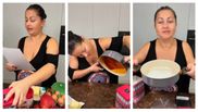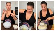 Vedeta a pregătit merele cu grijă, aranjându-le frumos în cratiță, apoi a adăugat feliile de unt sărat deasupra acestora. Ea a dorit să vadă cum acest detaliu va influența gustul prăjiturii, anticipând că untul sărat va adăuga un plus de savoare. Aproximativ 50-60 de grame de unt au fost folosite pentru a unge merele, care erau mari și pregătite pentru a fi coapte.